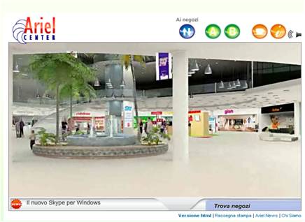 Il primo sito è Ariel Center, un centro commeciale tridimensionale nato nel luglio 2007 dalla società pordenonese Anauel Group. Dal punto di vista grafico, presenta un'esperienza di shopping piacevole ed eccitante, che unisce l'immersione data dalla grafica 3D con la semplicità del sistema di navigazione "punta e clicca" già utilizzato in molti videogiochi d'avventura, con l'utilizzo di tecnologia Flash, che dà la parvenza di "passeggiare" nel centro commerciale. Il sito si presenta, infatti, come un ambiente grafico che ripropone in un tutto e per tutto le fattezze di uno shopping mall ultramoderno in vetro e acciaio, con tanto di scale e ascensore di cristallo che permettono di accedere ai diversi piani del centro (che denotano diverse categorie merceologiche), angolo bar (che nel caso è la community del sito) e diversi criteri espositivi. L'intero centro commerciale diventa, infatti, un modo per sperimentare formule di navigazione ancora poco diffuse e soprattutto modalità di trasmissione delle informazioni non intrusive, rispetto alle finestre pop-up dei siti/portali: la pubblicità viene veicolata all'interno di schermi, poster, hostess e video promozionali perfettamente integrati nell'ambiente.