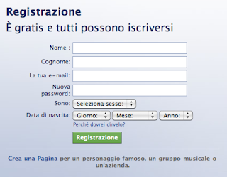 Una volta giunti in home page facebook, sotto il form di registrazione c'è scritto "Crea una Pagina per un personaggio famoso, un gruppo musicale o un'azienda.". Fastastico, se sei il rappresentante ufficiale o disponi dell'autorizzazione a creare la pagina hai trovato il link giusto! Pensa che bello: non dovrai più spezzare in due la ragione sociale ed inserirla tra "Nome" e "Cognome", non dovrai più impazzire per decidere se la tua azienda è "Maschio" o "Femmina" e non dovrai più invertarti la "Data di nascita".